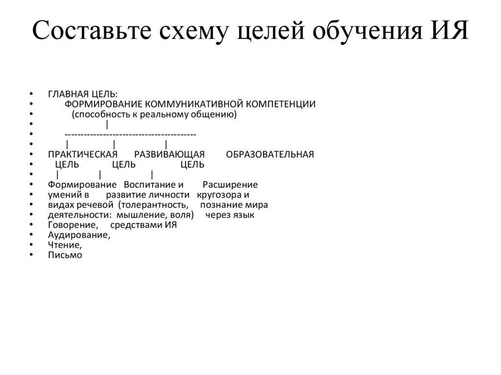 Составьте схему целей обучения ИЯГЛАВНАЯ ЦЕЛЬ: