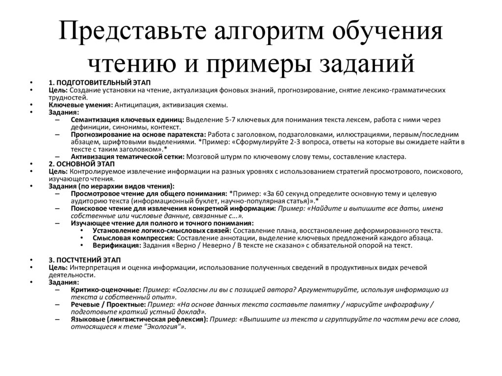 Приемы: Алгоритм выполненного задания; «карта стратегий» (отметка использованных приемов: