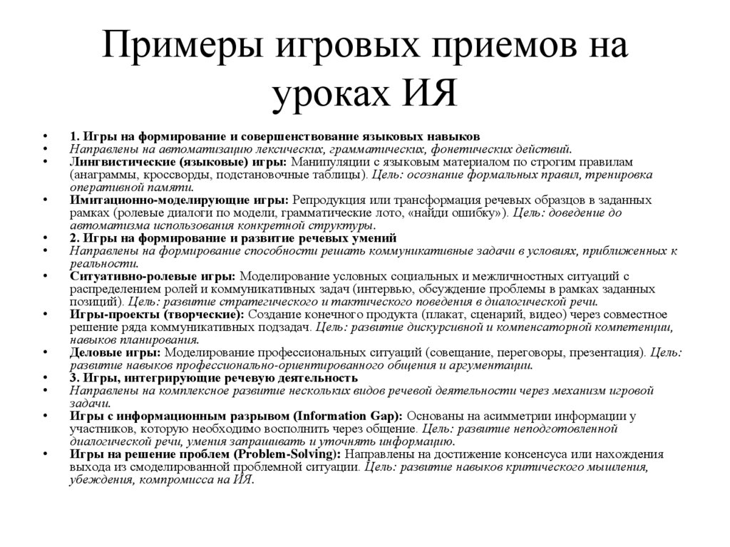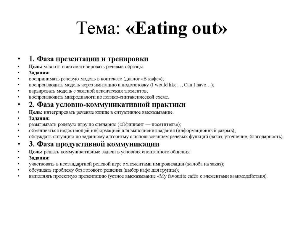 Итог: Ролевая игра «В пабе» с проблемной ситуацией (например, нет какогото блюда). Ученики реально общаются, чтобы решить задачу. Ошибки, не