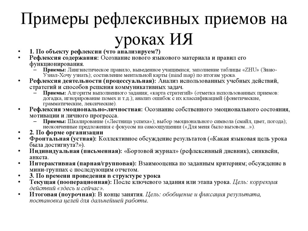 Примеры рефлексивных приемов на