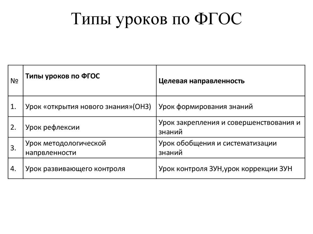 Типы уроков по ФГОС