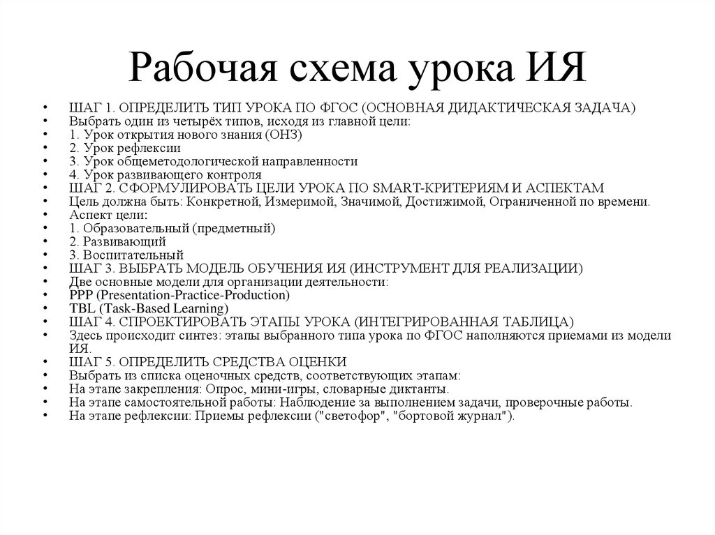 Рабочая схема урока ИЯШАГ 1. ОПРЕДЕЛИТЬ ТИП УРОКА ПО ФГОС (ОСНОВНАЯ ДИДАКТИЧЕСКАЯ ЗАДАЧА)