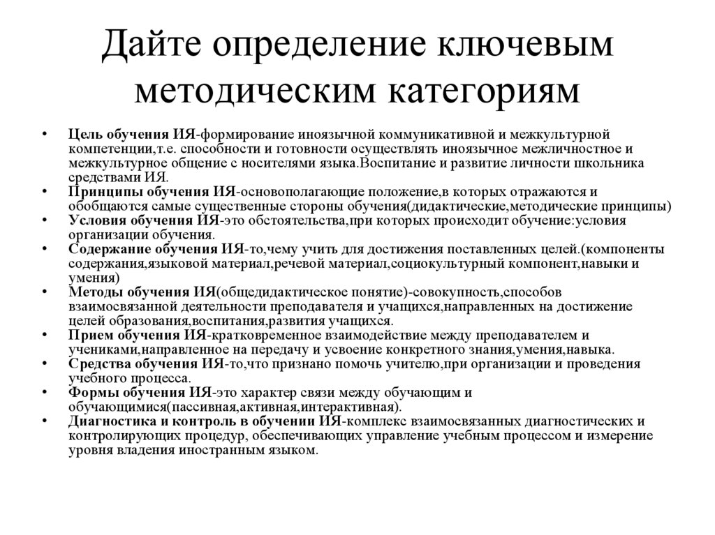 Дайте определение ключевымметодическим категориям