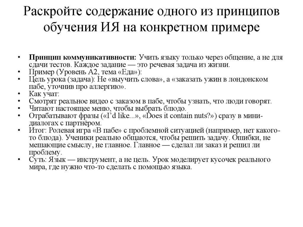 Раскройте содержание одного из принциповобучения ИЯ на конкретном примере