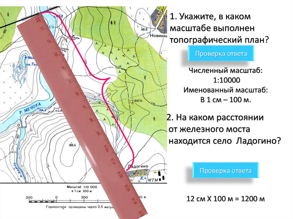 • 1. Укажите, в какоммасштабе выполнен