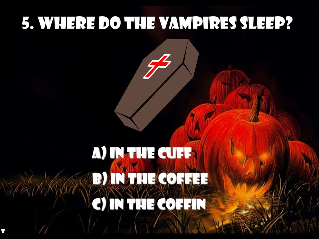 5. Where do the Vampires sleep?a) in the cuff