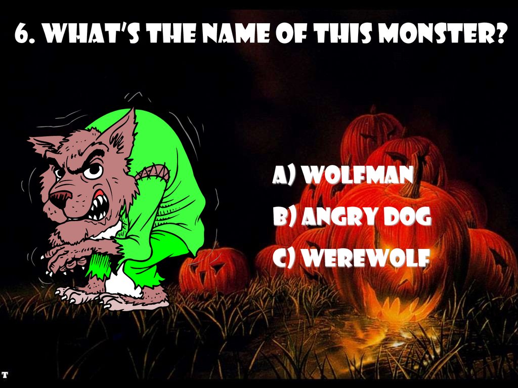 6. What’s the name of this monster?a) Wolfman