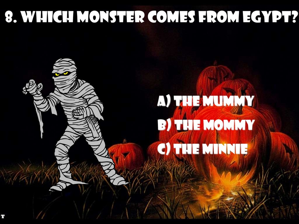 8. Which monster comes from Egypt?a) the Mummy