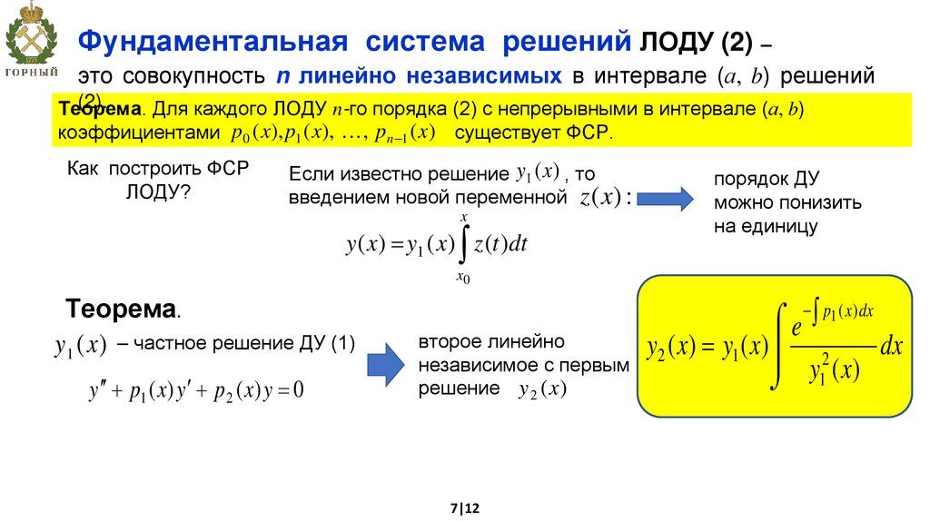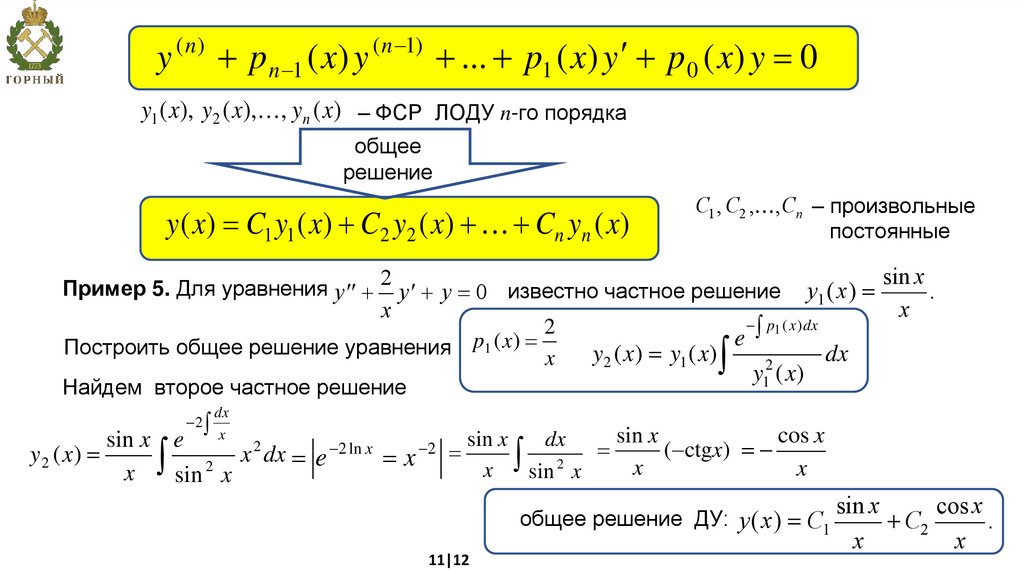 y1 ( x ) и y2 ( x ) – ФСР ДУ