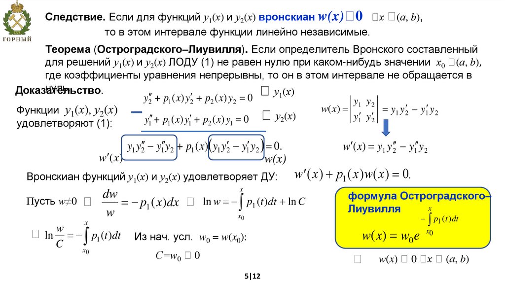 у (х) и у (х) – решения (1)