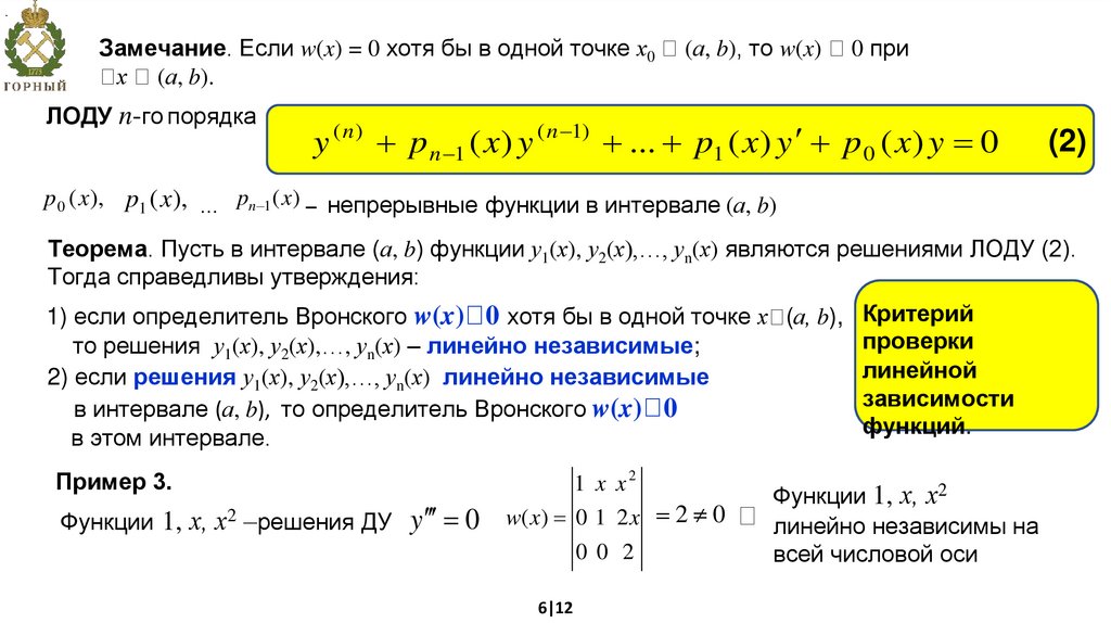 линейно независимые решения ДУ (1)