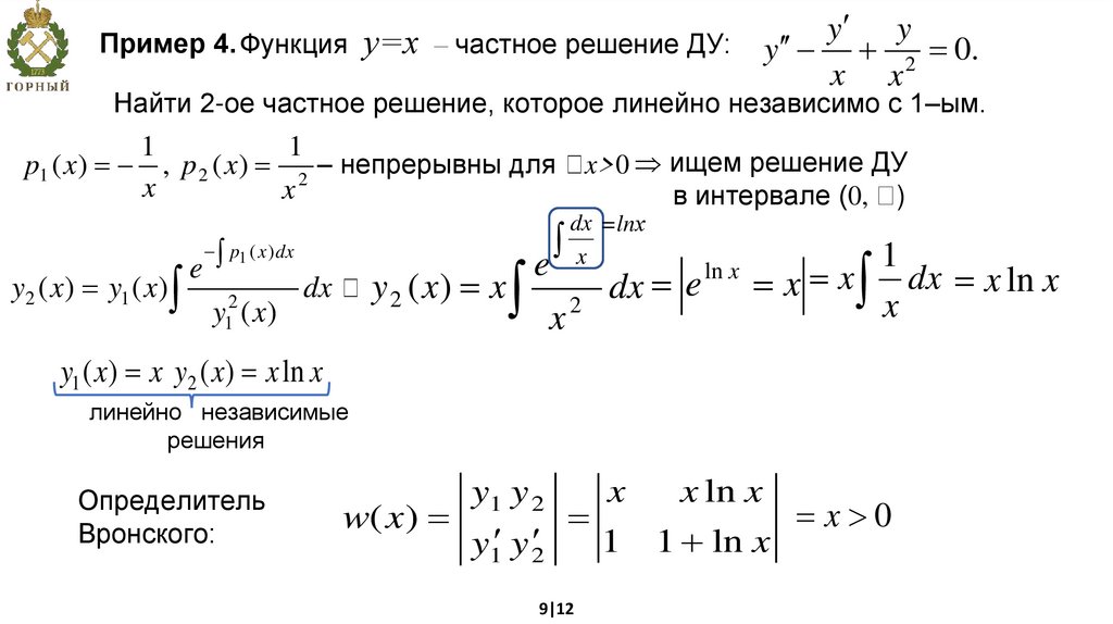 p1 ( x) , p 2 ( x) 2 – непрерывны для x>0 ищем решение ДУ