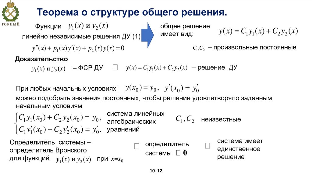 y ( x) C1 y1 ( x) C2 y2 ( x) – решение ДУ