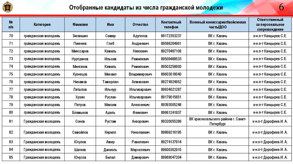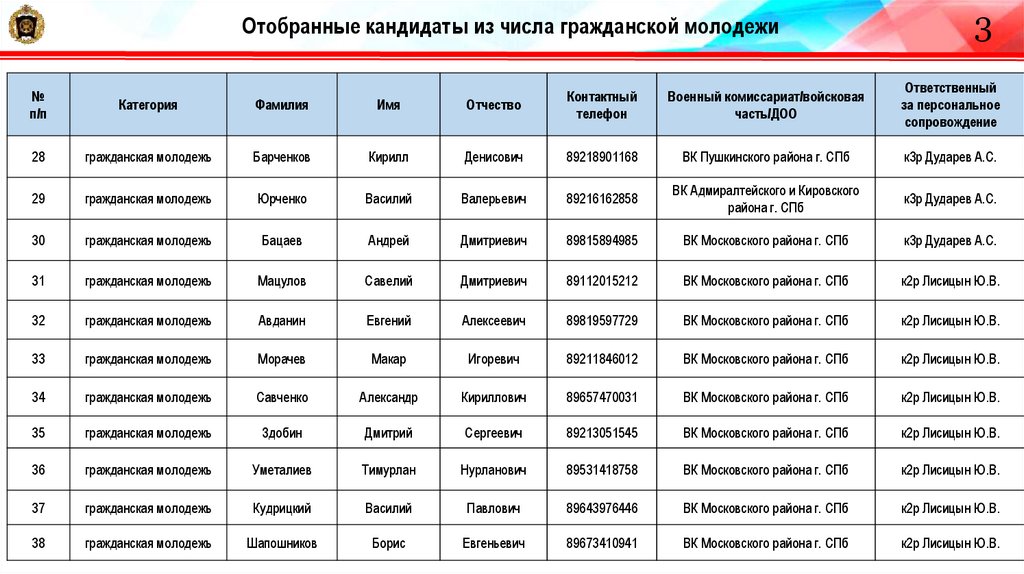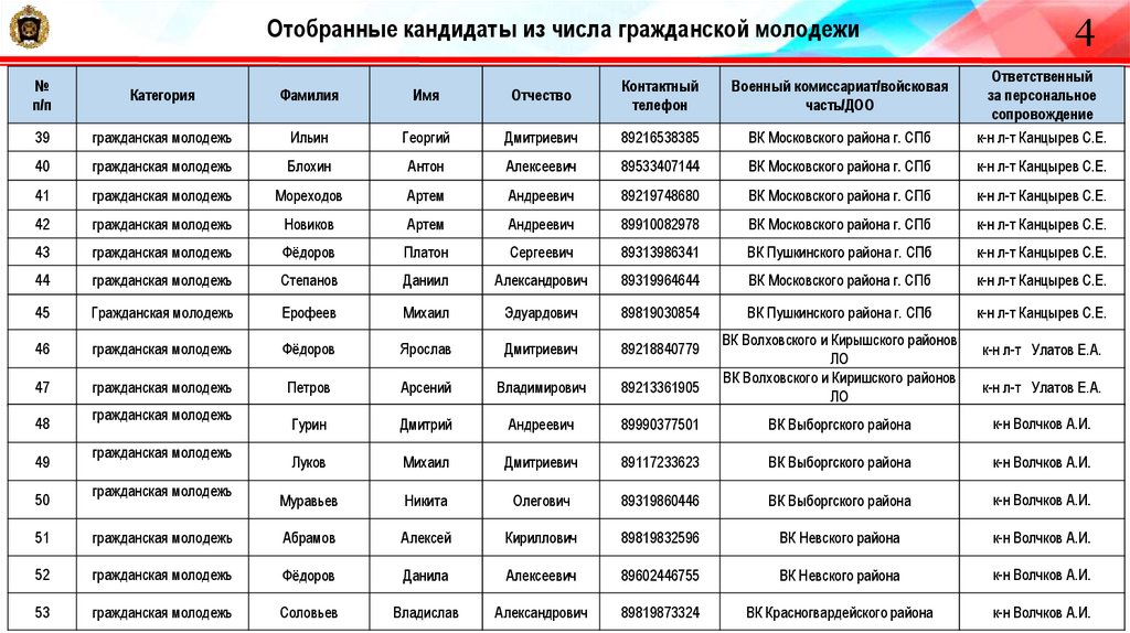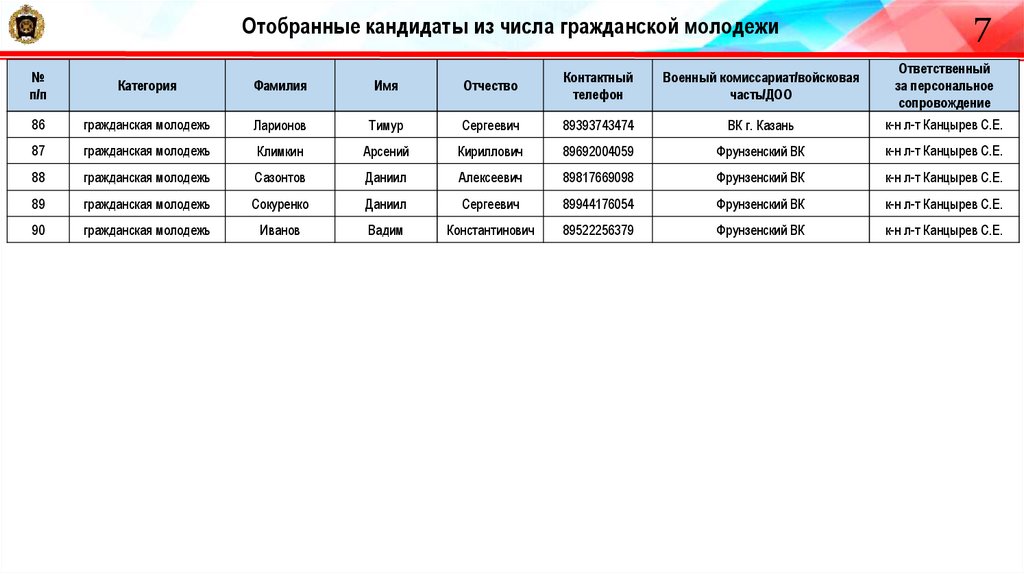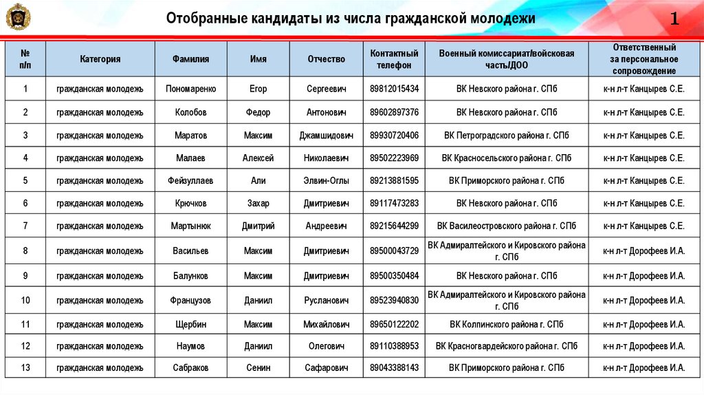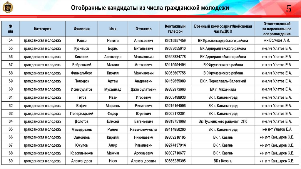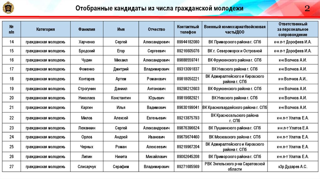 22. Отобранные кандидаты из числа гражданской молодежи
