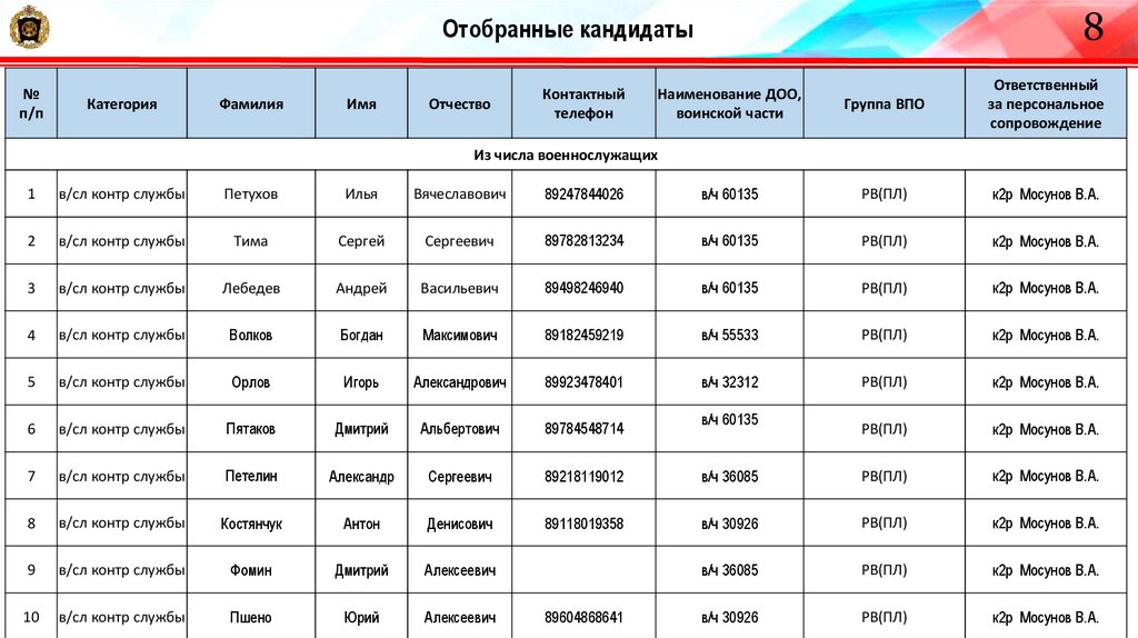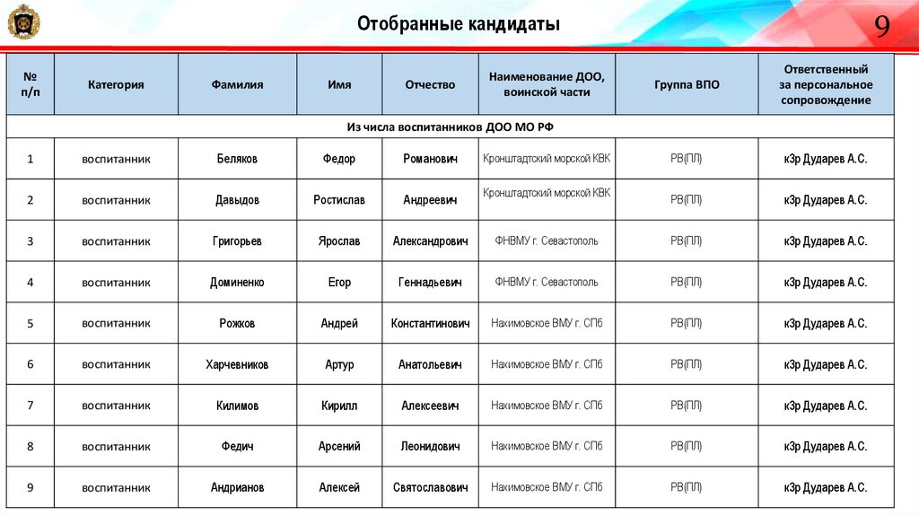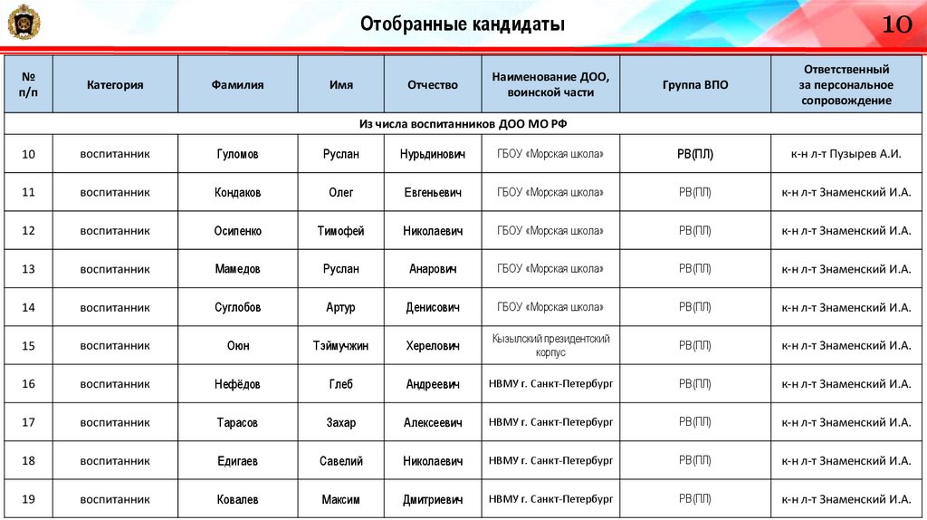 11Отобранные кандидаты