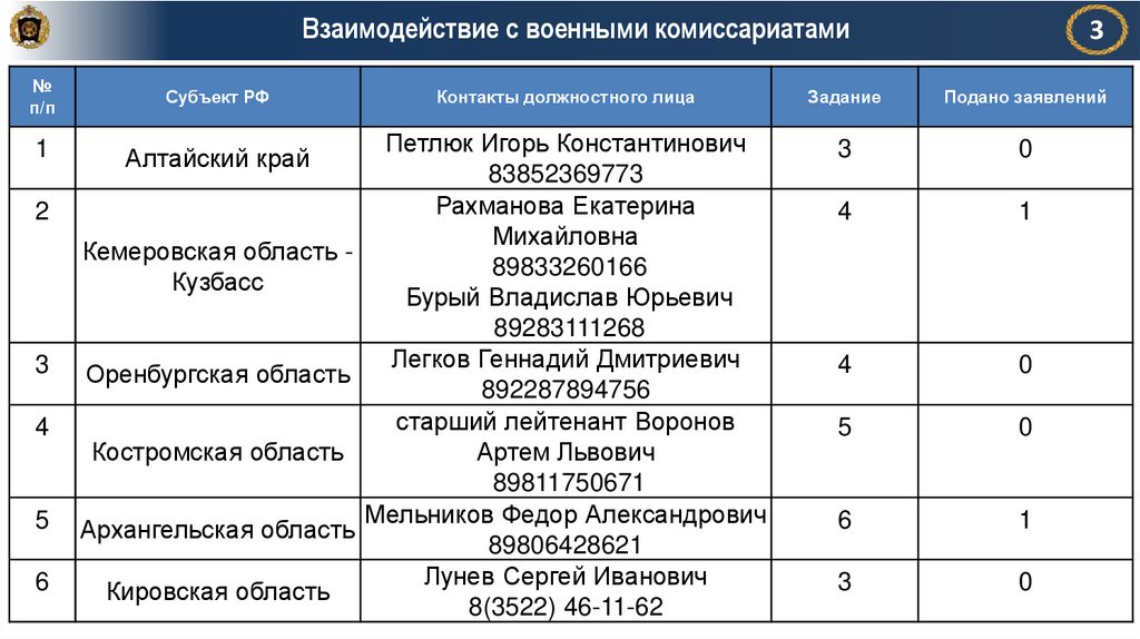 Взаимодействие с военными комиссариатами№