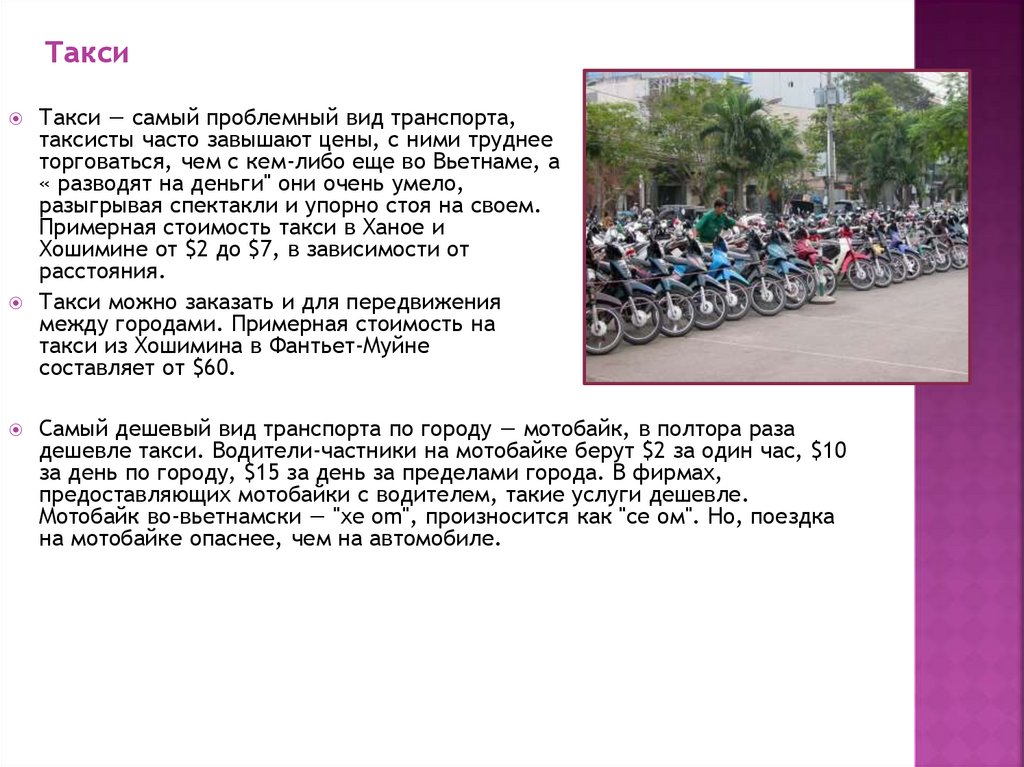 Самый дешевый вид транспорта по городу — мотобайк, в полтора раза