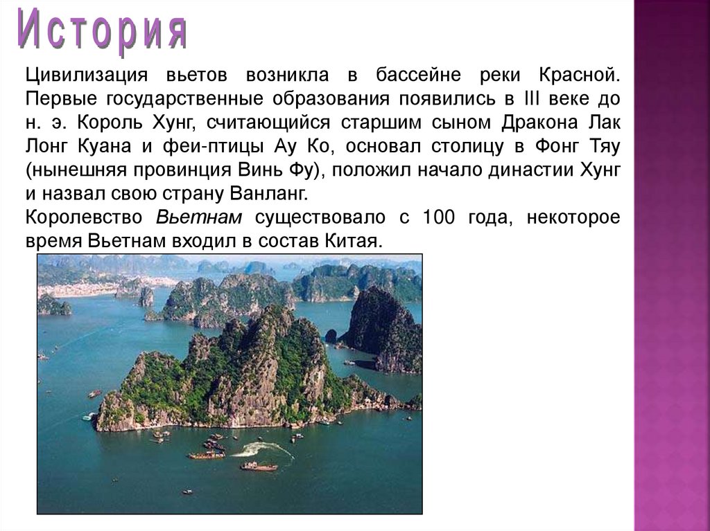 Цивилизация вьетов возникла в бассейне реки Красной.Первые государственные образования появились в III веке до