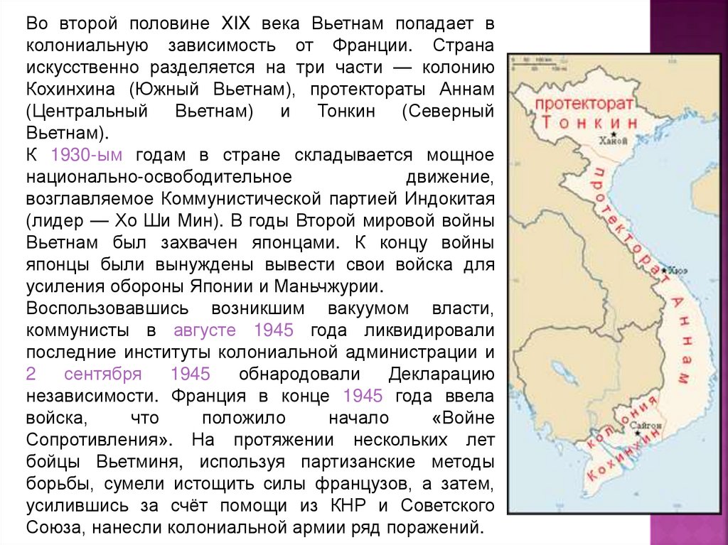 Во второй половине XIX века Вьетнам попадает вколониальную зависимость от Франции. Страна
