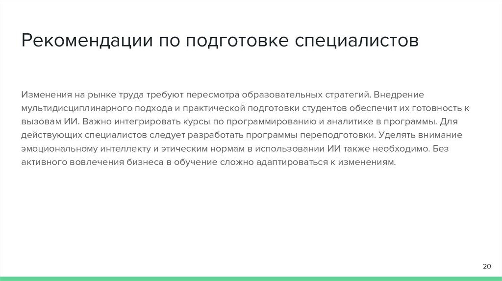 Рекомендации по подготовке специалистовИзменения на рынке труда требуют пересмотра образовательных стратегий. Внедрение