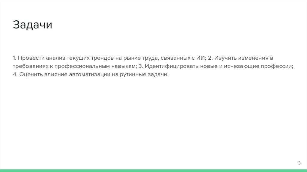 Задачи1. Провести анализ текущих трендов на рынке труда, связанных с ИИ; 2. Изучить изменения в