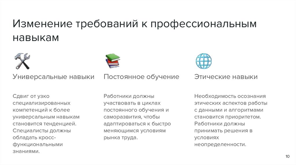 специализации навыков и возрастающая важность технологической грамотности, межличностных