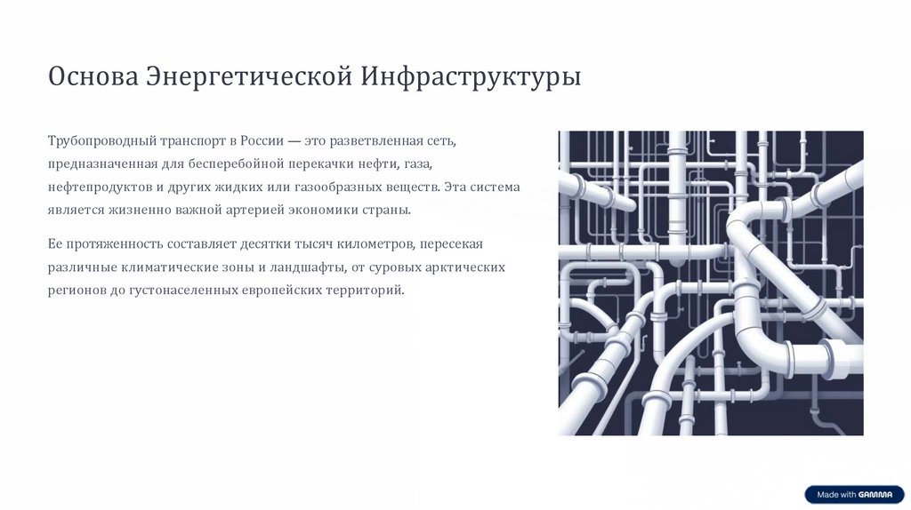 Основа Энергетической ИнфраструктурыТрубопроводный транспорт в России — это разветвленная сеть,
