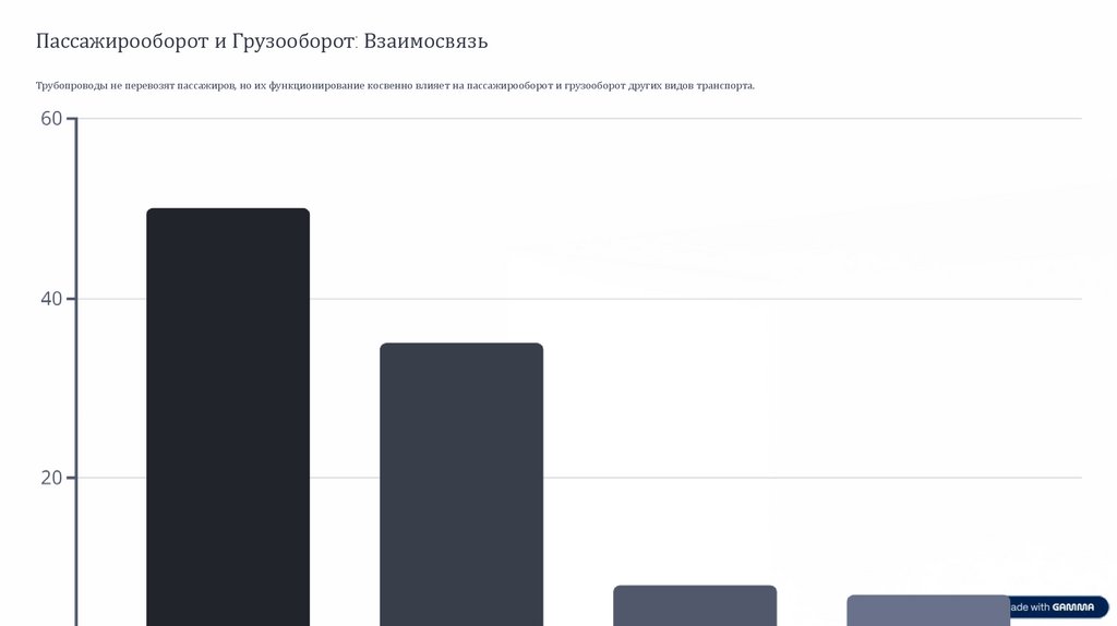 Пассажирооборот и Грузооборот: ВзаимосвязьТрубопроводы не перевозят пассажиров, но их функционирование косвенно влияет на пассажирооборот и грузооборот других видов транспорта.