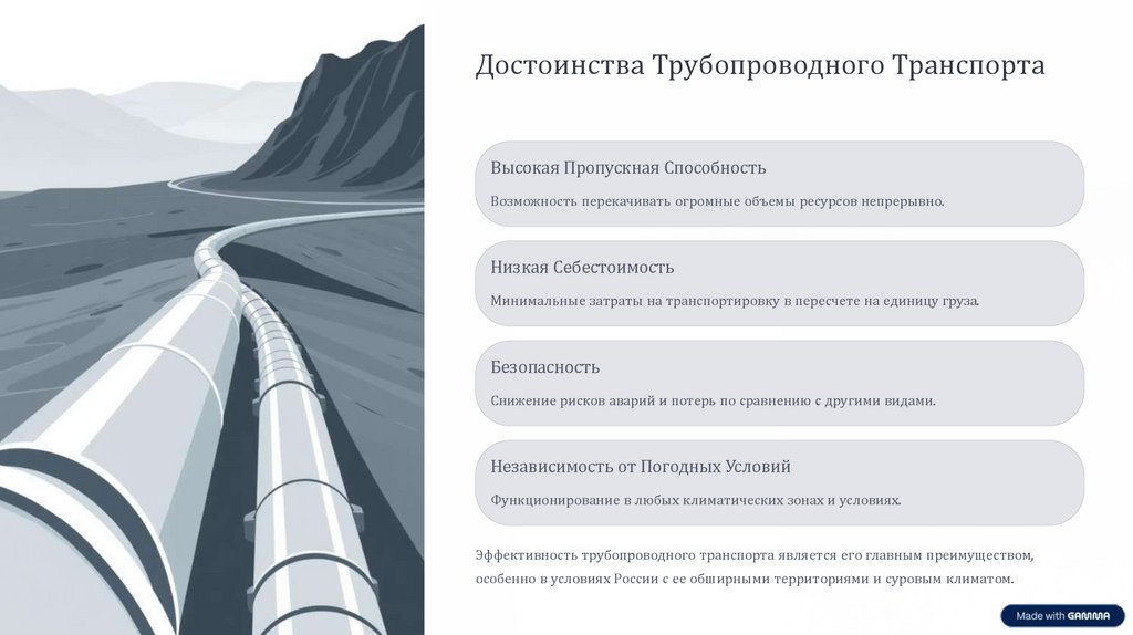 Эффективность трубопроводного транспорта является его главным преимуществом,