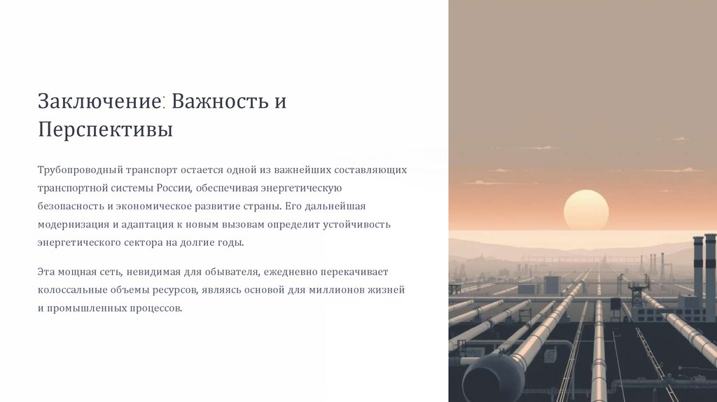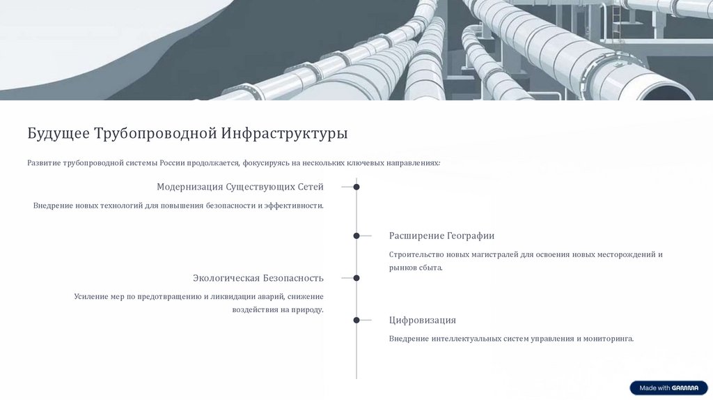 Будущее Трубопроводной ИнфраструктурыРазвитие трубопроводной системы России продолжается, фокусируясь на нескольких ключевых направлениях: