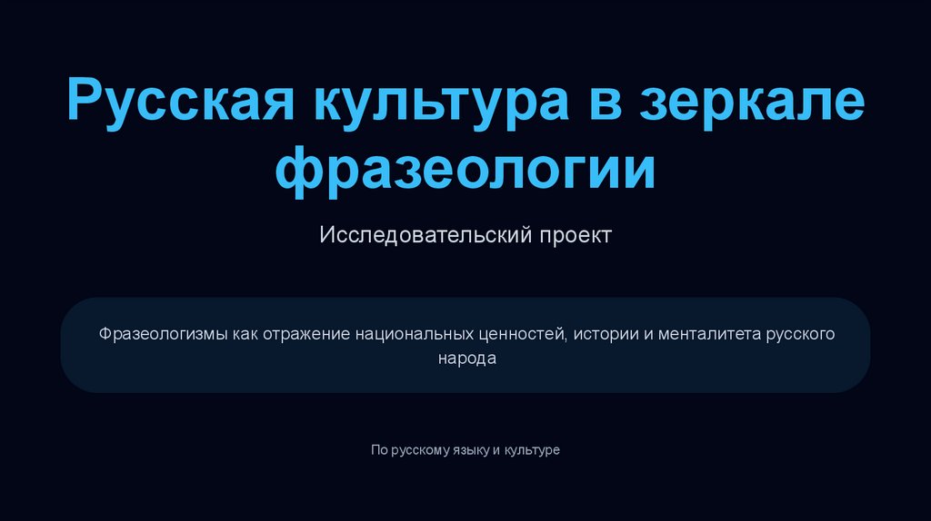 Фразеологизмы как отражение национальных ценностей, истории и менталитета русского