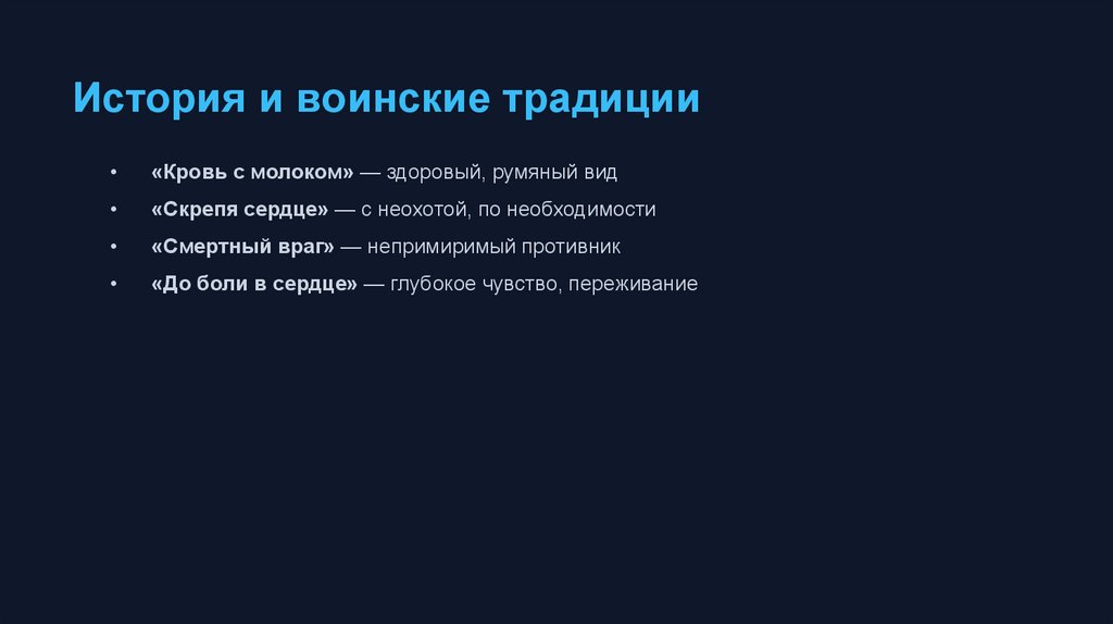 История и воинские традиции«Кровь с молоком» — здоровый, румяный вид