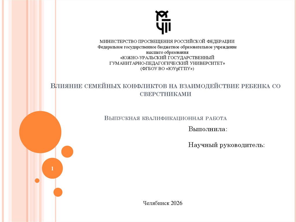 1. Влияние семейных конфликтов на взаимодействие ребенка со сверстниками Выпускная квалификационная работа