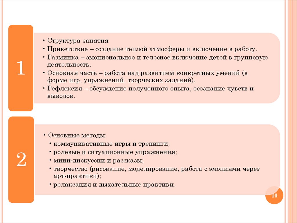 • Рефлексия – обсуждение полученного опыта, осознание чувств и