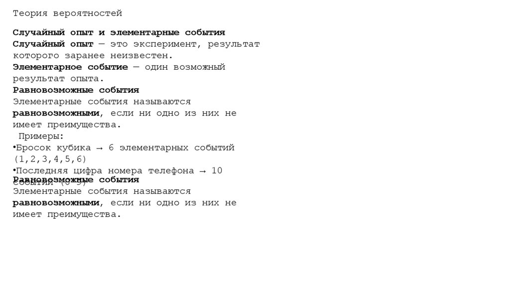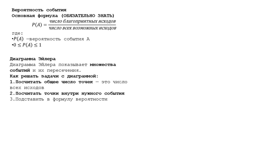 Вероятность событияОсновная формула (ОБЯЗАТЕЛЬНО ЗНАТЬ)