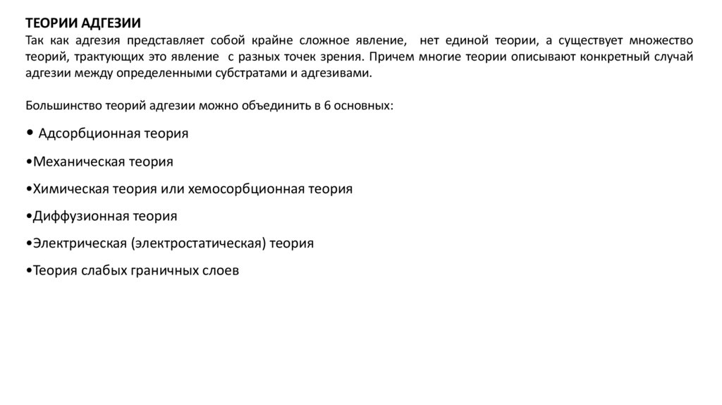 Большинство теорий адгезии можно объединить в 6 основных: