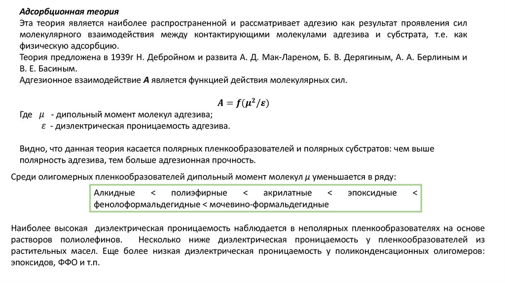 • Адсорбционная теория
