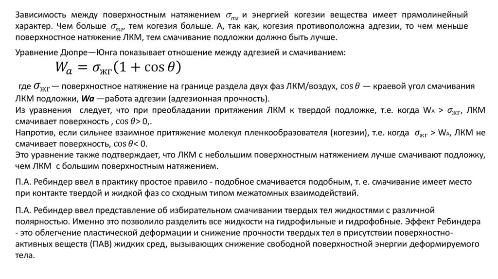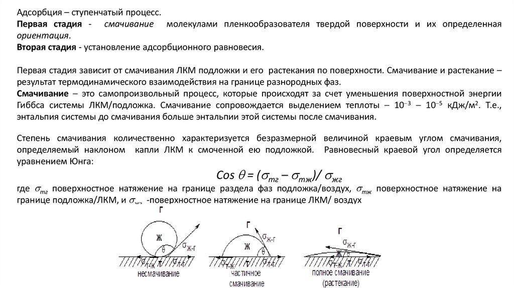 определяемой поверхностным натяжением, а адгезия способствует смачиванию и прикреплению к поверхности
