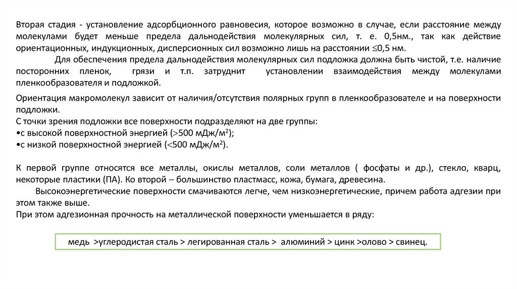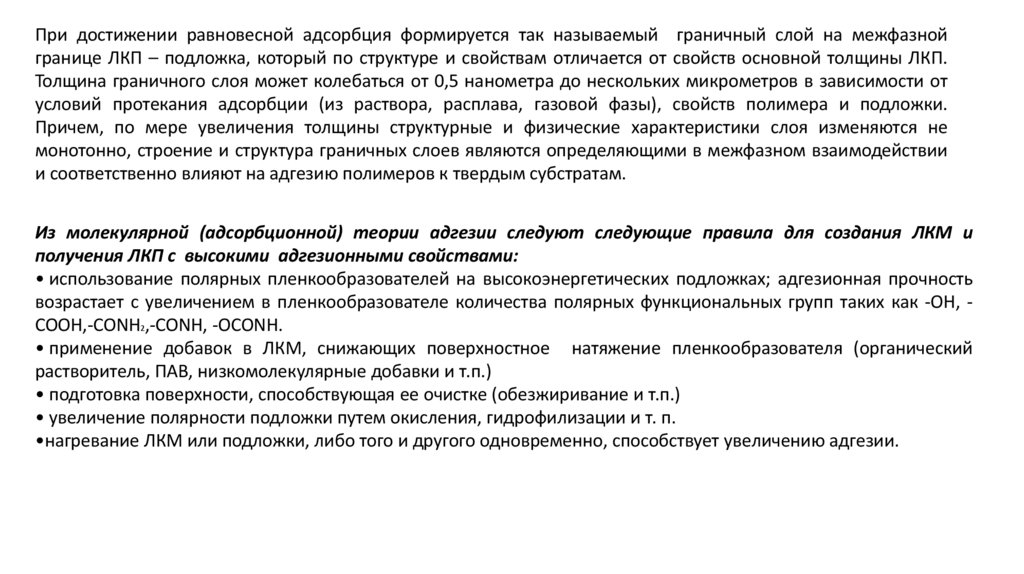 поверхности подложки; полярности пленкообразователя; условий формирования адгезионного соединения –