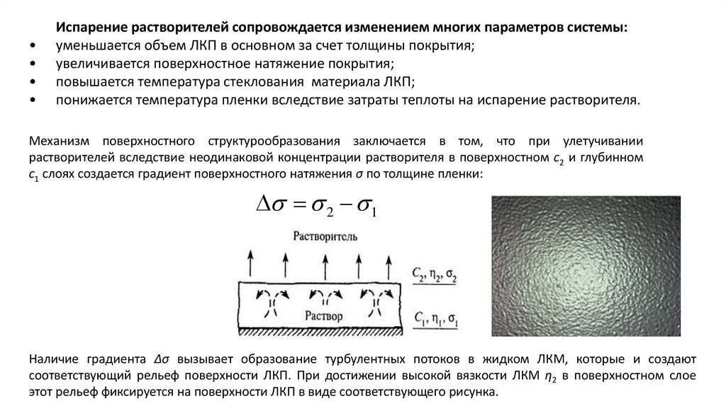 Испарение растворителей сопровождается изменением многих параметров системы: