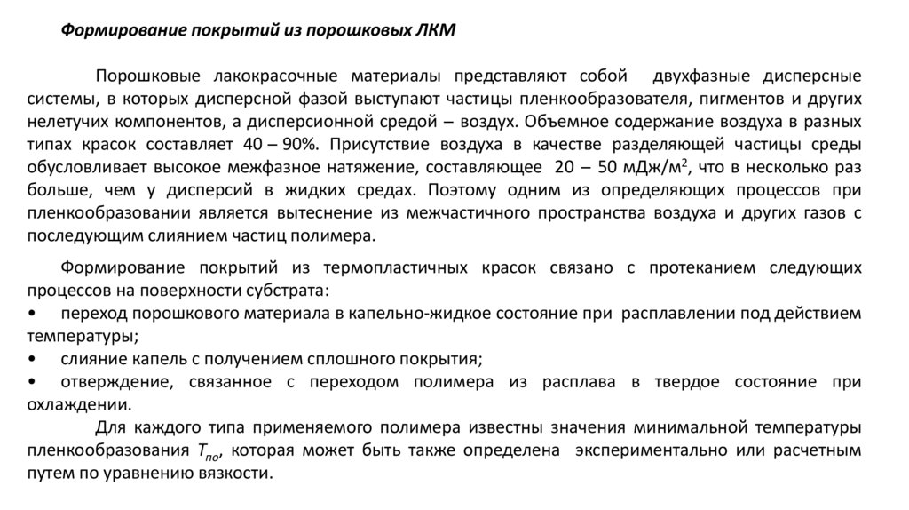 Формирование покрытий из порошковых ЛКМПорошковые лакокрасочные материалы представляют собой двухфазные дисперсные