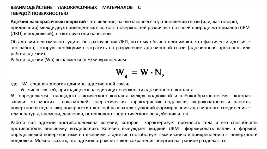 ВЗАИМОДЕЙСТВИЕ ЛАКОКРАСОЧНЫХТВЕРДОЙ ПОВЕРХНОСТЬЮ