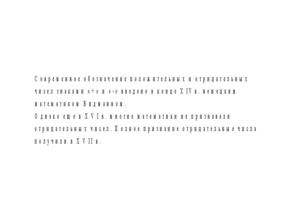 С оврем ен н ое об озн ачен и е п олож и тельн ы х и отри ц ательн ы хч и с е л зн а к а м и « + » и « -» в в е д е н о в к о н ц е X IV в . н е м е ц к и м