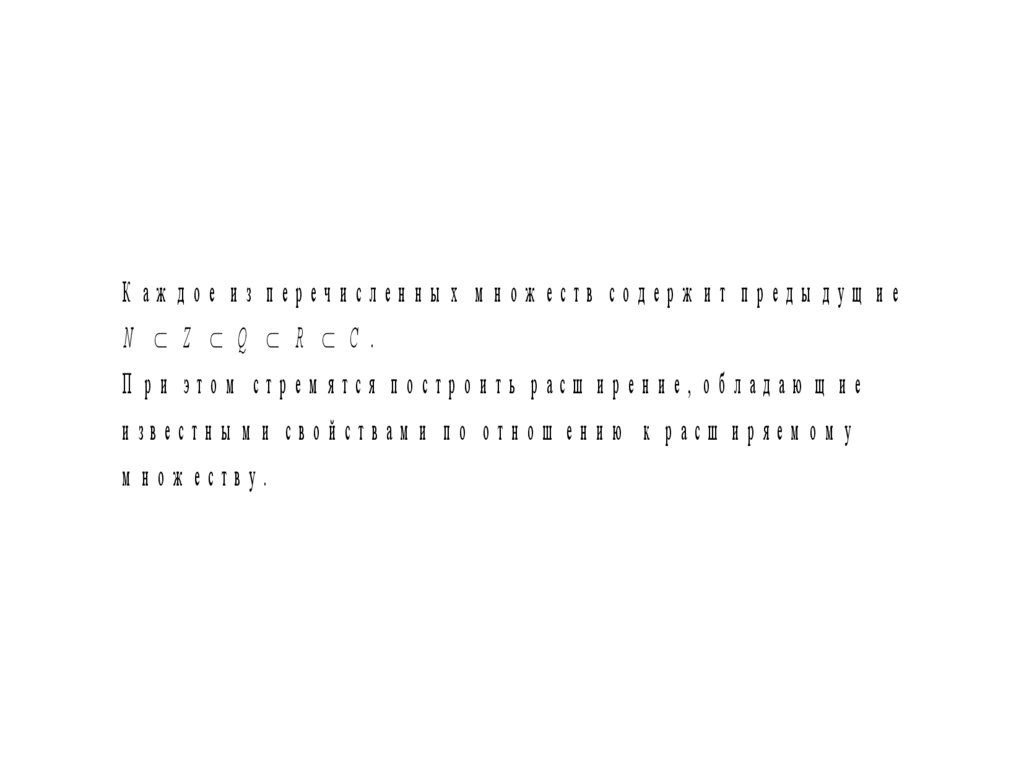 К аж дое из перечисленны х м нож еств содерж ит преды дущ иеN Z Q R C .