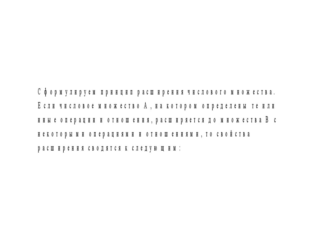 С ф орм улируем принцип расш ирения числового м нож ества.Е сли числовое м нож ество А , на котором определены те или