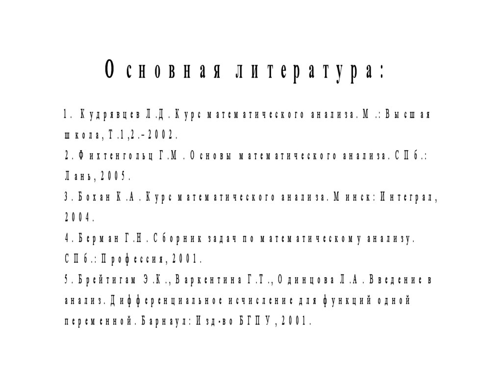 О сновная ли тература:1 . К у д р я в ц е в Л .Д . К у р с м а т е м а т и ч е с к о г о а н а л и з а . М .: В ы с ш а я