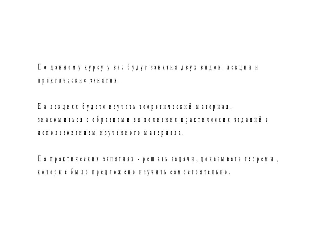 П о д ан н ом у курсу у вас б уд ут зан яти я д вух ви д ов: лекц и и ип ракти чески е зан яти я.