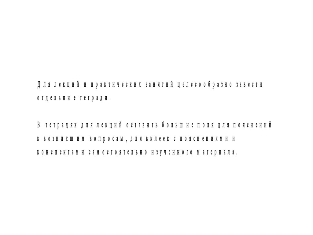 В тетрадях для лекций оставить больш ие поля для пояснений