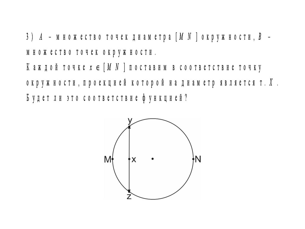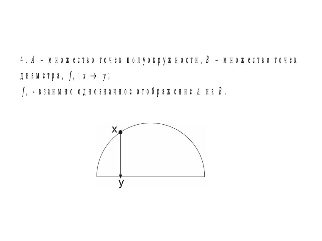 4. A – м нож ество точек полуокруж ности, B – м нож ество точекд и ам етр а, f4 : x y;