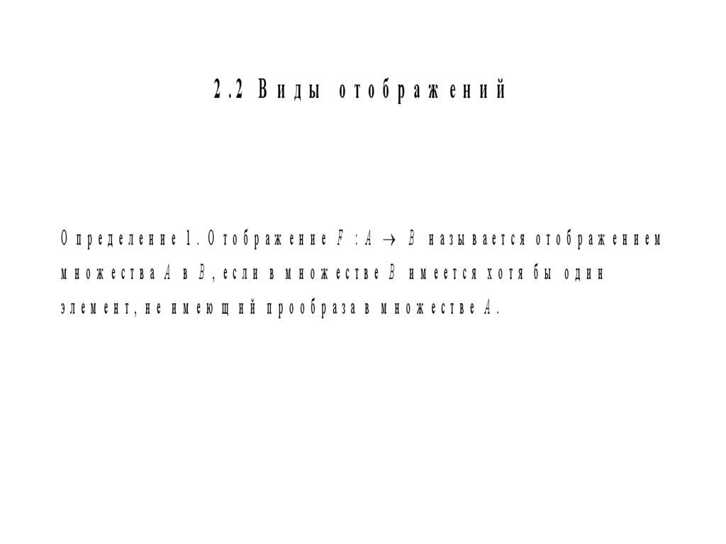 О п ред елен и е. О тоб раж ен и е f : A B такое, что лю б ы м разли чн ы м